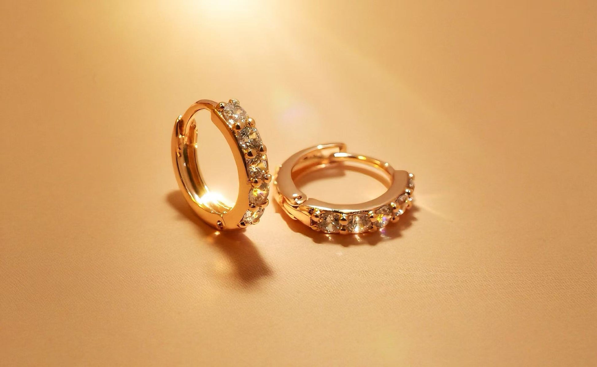 The Glowline Earrings feature a clean, sculpted gold hoop lined with brilliant-cut cubic zirconia stones. Subtle enough for daily wear, yet luminous enough for golden hour, they’re your go-to piece for adding a little extra light to your look.
