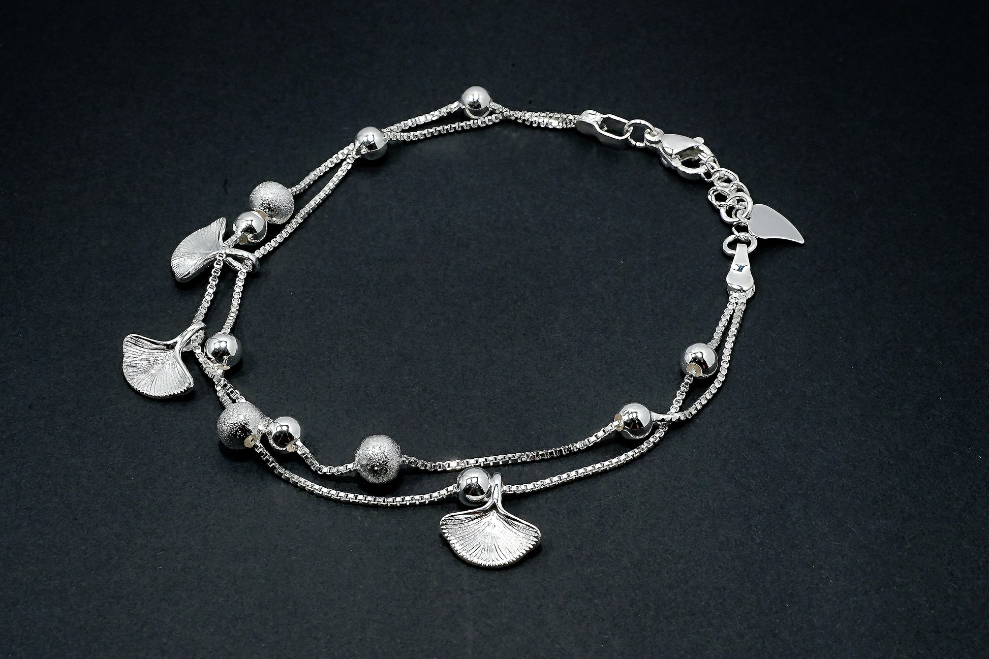 Sterling Silver Double Chain Bracelet with Ginkgo Charms