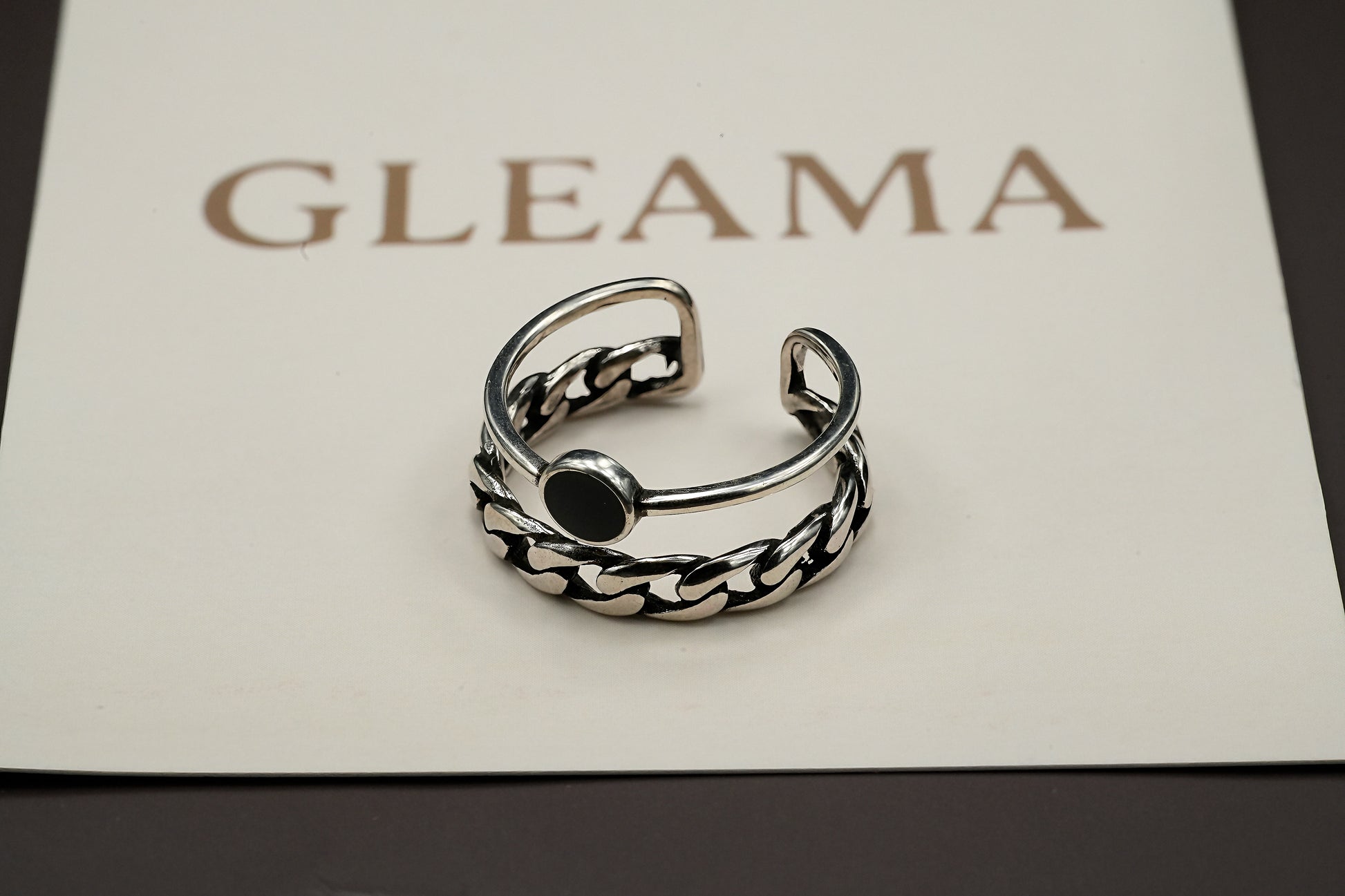 Vintage Silver Chain Ring with Black Accent